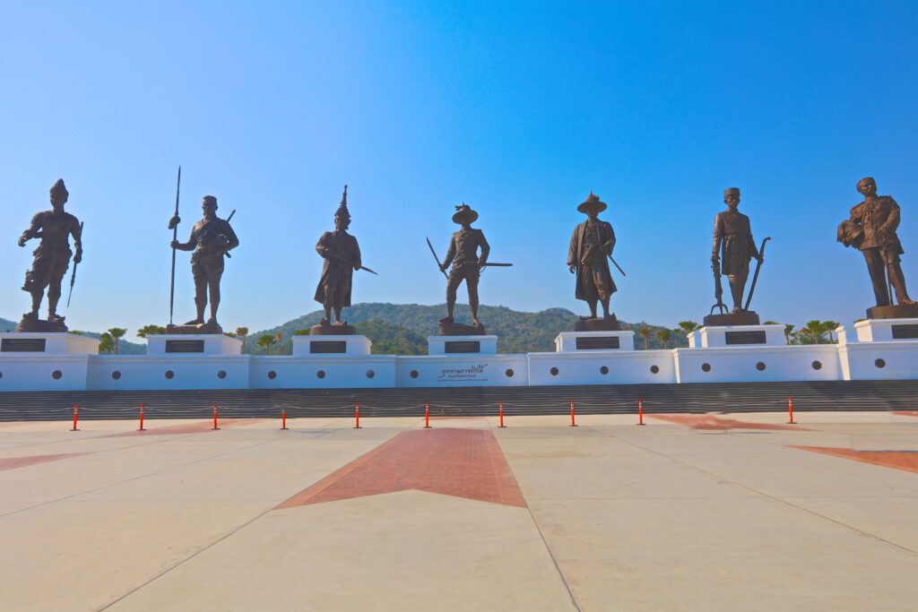 พระบรมราชานุสาวรีย์ที่ประดิษฐานในอุทยานราชภักดิ์ประกอบด้วยพระมหากษัตริย์ไทย 7 พระองค์จากยุคต่าง ๆ